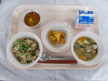 ひじきご飯 吉野汁 みそポテト 蒸し卵風そぼろあんかけ 牛乳