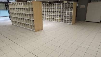 生徒が早く帰ることから、たくさん作業時間がとれるため、主事さんたちが卒業式に向けて生徒玄関の廊下にある石のタイルを真っ白に磨いてくれました!