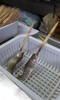 釣った魚を塩焼きにします。