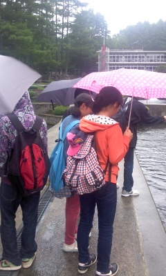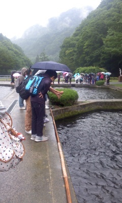 魚に餌付けをしました。
