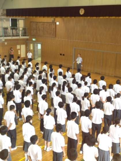 9月3日(月)全校朝礼 公開日 2012/09/03 更新日 2012/09/03 学校・学年行事 学校長からの講話の中で、豊島区長ならびに豊島区教育委員会教育長より出された『人に優しく、思いやりにあふれるまちにしよう』アピールが読み上げられ、いじめは絶対に許されないことの話がありました。皆真剣に聞き入っていました。 いいね(0)