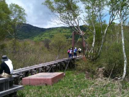 歩を進める度に、吊り橋がゆれるので、おっかなびっくり渡っています。