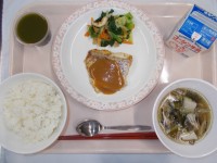 10月18日(火)の給食 ご飯 スープ 家常豆腐 花しゅうまい りんご 牛乳