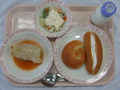 献立 生クリームサンド チーズパン ロールキャベツ ツナサラダ 牛乳