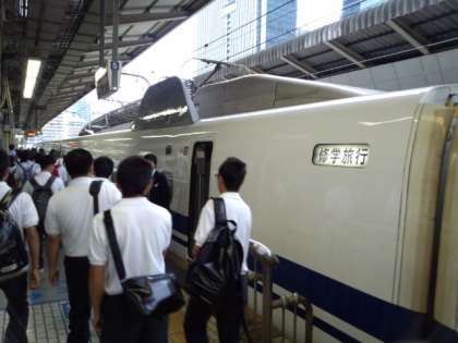 これから新幹線、修学旅行車に乗ります。