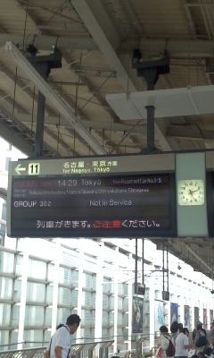 京都駅ホームに移動。14時35分発の新幹線に乗車して、東京へもどります。