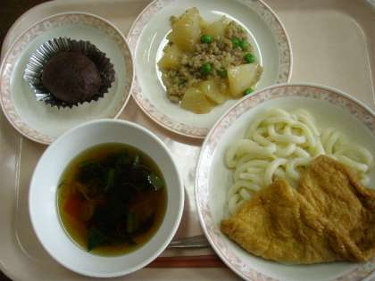 <3月17日> きつねうどん 大根のそぼろあんかけ ぼたもち
