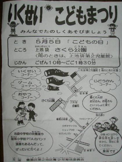 育成『こどもまつり』① 公開日 2007/05/06 更新日 2007/05/06 部活動 5月5日(祝)10:00〜13:30 上池袋さくら公園で、豊島区第二地区青少年育成委員会(石井幸子 会長)主催の 育成『こどもまつり』が行われ、池袋中学校吹奏楽部の演奏が行われました。 いいね(0)