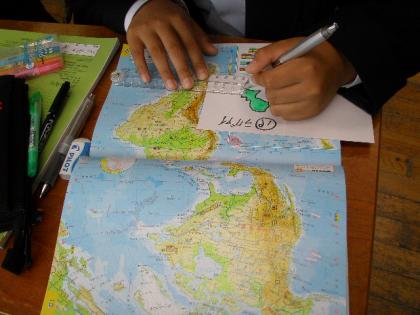 5月11日 1年生の社会は「地理」の時間。 各国のカードを作成しています。
