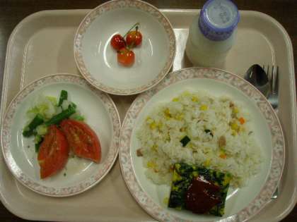 <6月12日> 野菜ピラフ ジャーマンオムレツ トマトサラダ さくらんぼ 牛乳