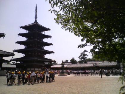 「柿くえば…」法隆寺を見学しています。 大分、混んでいます。