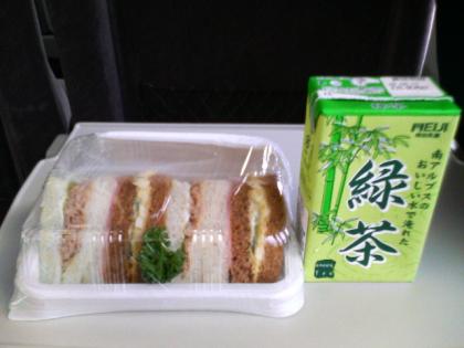 15:45 車内で「サンドイッチ」の軽食が配られました。