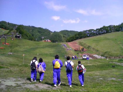14:15 宿舎前のスキーゲレンデで4Km 2時間のウォークラリー開始です。