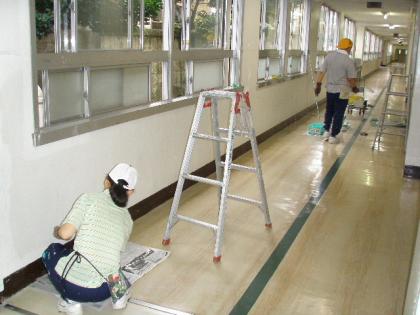 主に、夏の暑い時期の作業は大変だと思います。生徒の皆さんも、日頃の清掃に努め、床や壁がきれいな状態に保たれる様にしましょう。