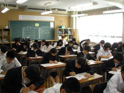 中間考査二日目です。今日は、「数学」「理科」「英語」。どの学年、どのクラスも真剣にテストを行っています。