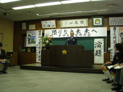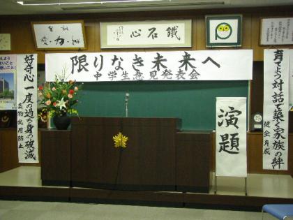 中学生意見発表会 公開日 2007/11/24 更新日 2007/11/24 校長メッセージ 11月24日(土) 池袋警察署6階講堂で「限りなき未来へ」をテーマに「中学生意見発表会」が行われました。(主催:池袋警察署、池袋防犯協会 協賛:豊島区青少年育成委員会、少年を守る環境浄化推進委員会) 池袋警察所管内の区立学校2校(池袋中、西池袋中)と私立学校2校(豊島岡女子学園中、立教池袋中)から12名の生徒が自分の意見を発表してくれました。 いいね(0)