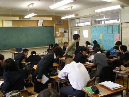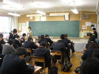「校長インタビュー」を録画した後、授業風景も撮影したいということで、2年4組に協力していただきました。英語の授業をしている場面で、スクールスタッフ(教員志望の立教大学の学生さん)も一緒の授業でした。