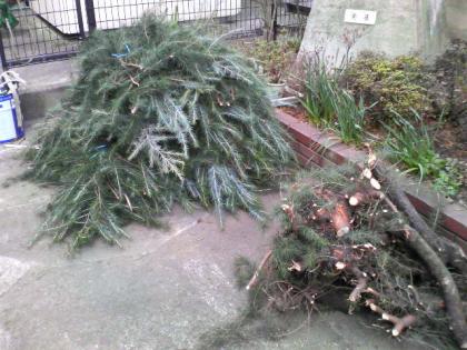 用務主事さんが、校門脇のヒマラヤスギを剪定していました。高所なのではしごをかけて行っています。毎日通っている校門の脇ですが、改めてみてみると沢山の枝をつけていたことがわかります。