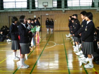 受験(受検)を直前に控えた(一部の高校では入試が始まっている学校もあります)3年生に、1・2年生からことばを添えて、折り鶴とメッセージカードが手渡されました。