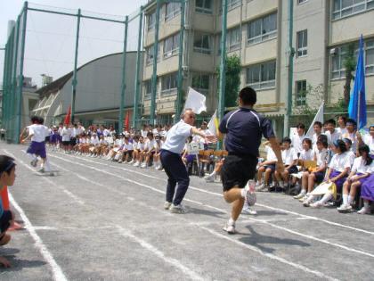 1年生の全員リレーには、教員、保護者の方もチームをつくり、一緒に走りました。(教員保護者チームは最下位でしたが…)