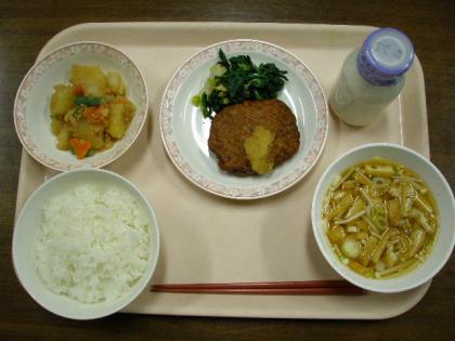 <12月11日 上段> ごはん 味噌汁 さつま揚げ ほうれん草のお浸し ジャガイ...