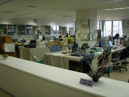 職員室(ここでは「校務センター」と呼んでいました)には、壁がありません。また、...