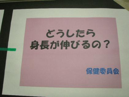保健室の前には、学習発表会で保健委員会が発表した「どうしたら背が伸びるの?」の...