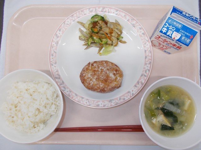 もみじごはん味噌肉じゃが鉄分たっぷりサラダ牛乳