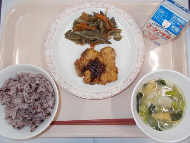 ~春節献立~ 黒米ごはん 油淋鶏風ねぎレモンソースがけ きんぴらごぼう 味噌汁(...