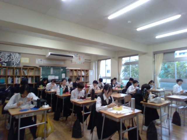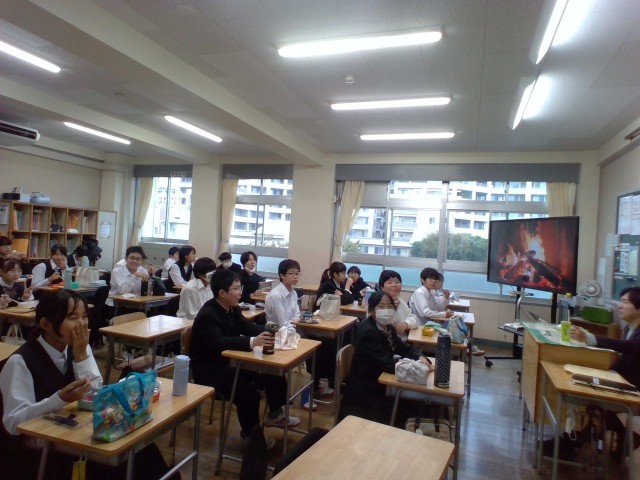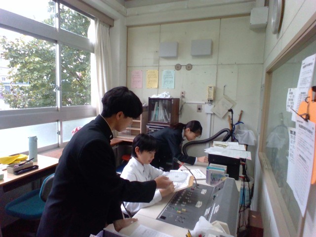 今日は、生徒発表会を予定していましたが、通常の授業を行うことになりました。お昼の放送で、放送委員は、各クラスの自由曲を選曲し、最後に「10月31日の学年発表まで気持ちを切らさずにクラスで団結して頑張りましょう」とメッセージを送っていました。とても素敵な放送でした。