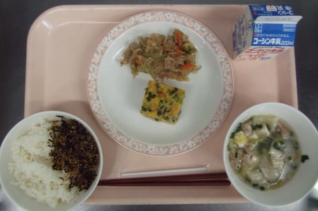 ふりかけは、ごま、のり、じゃこ、鰹節の入った栄養たっぷりのふりかけです。