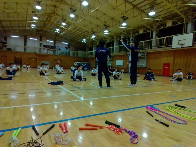 「笑顔と学びのプロジェクト」は、体験活動を通じて、生徒の積極性や協調性、コミュニケーション力など豊かな心の育成につかなる機会の提供を目的としている東京都教育委員会の事業です。今回は、なわとび世界チャンピオンの皆様(黒野さん、稲葉さん、田野﨑さん)をお招きし、演技を見せていただいたり、技のコツを教えていただきながら実際に跳んでみたりしました。圧巻のパフォーマンスに生徒たちは目を輝かせ、体験活動では、苦戦しながらも楽しそうに挑戦する姿が見られました。これから生きていく上で乗り越えなければいけない課題を達成するためには、前にある小さいかもしれない目標を一つ一つクリアすることがとても大切と教えていただきました。今回の学びを、これからの生活の中で活かしてほしいです。