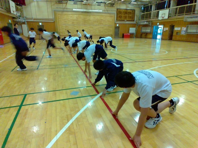 1年生の体育では、短距離走の基本となる「クラウチングスタート」の練習を行いました。初めて体験する前傾姿勢に、最初は「足の位置はどこかな?」「お尻はどのくらい上げるの?」と戸惑う様子も見られましたが、先生の合図に合わせて何度も繰り返し練習に励みました。「On your marks, get set 」のあとのピストル音のあとに力強く地面を蹴り、走り抜ける生徒の姿をぜひ楽しみにしていてください。