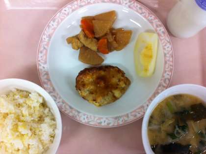 10月7日(月)の給食 公開日 2013/10/07 更新日 2013/10/07 給食 雑穀ご飯 豆腐&チーズ入りつくね 大根の炒り煮 味噌汁 果物(りんご) 牛乳 今日のつくねは、豆腐とチーズがたっぷり入ったつくねでした。豆腐は水切りしてから鶏肉と一緒によくこね、ねぎ、しょうが、調味料、チーズを混ぜて焼いています。詳しい作り方が給食だよりに書いてありますので、ぜひお試しください。 いいね(0)