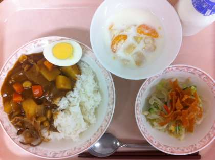 10月8日(火)の給食 公開日 2013/10/08 更新日 2013/10/08 給食 カレーライス 福神漬 ゆでたまご パリパリサラダ フルーツヨーグルト 牛乳 今日のパリパリサラダは、ワンタンの皮を素揚げしたものがのっています。香ばしくパリっとした食感がアクセントになっています。今日は野菜が苦手なクラスもよく食べてくれていました。 いいね(0)