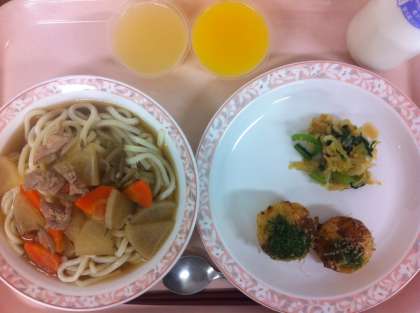 10月23日(水)の給食 公開日 2013/10/24 更新日 2013/10/24 給食 けんちんうどん たこあげくん 辛子和え 牛乳 ★ゼリーリザーブ★ アップルorオレンジ 今年度初めて「たこあげくん」を作りました。たこあげくんは、じゃがいもを柔らかくゆでてマッシュしたものにたこ、キャベツ、たまご、片栗粉を混ぜて丸めて揚げています。1年生は初めて食べた人が多く「びっくりしました!」と言っていました。 ゼリーのリザーブはアップル153人、オレンジ100人という結果でした。 いいね(0)
