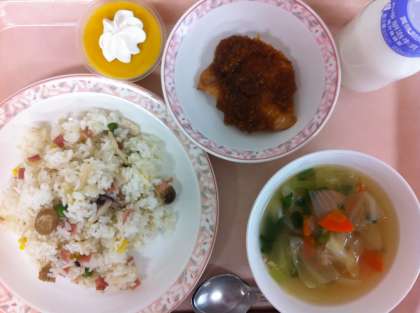 給食では、かぼちゃを使ったプリンを作りました。1年生の教室では、「かわいい!」という声が聞こえ、おかわりのジャンケンで盛り上がっている様子が見られました。