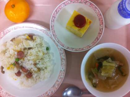 11月6日(水)の給食 公開日 2013/11/06 更新日 2013/11/06 給食 ウインナーピラフ スパニッシュオムレツ 野菜スープ 果物(みかん) 牛乳 今日のスパニッシュオムレツは、スペインの郷土料理です。炒めた玉ねぎ、じゃがいも、塩胡椒、砂糖、牛乳、たまごを混ぜ合わせて焼きます。一般的には、フライパンを使い丸く作りますが、給食はオーブンで作るため四角くなります。 いいね(0)