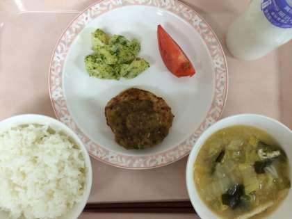 12月2日(月)の給食 公開日 2013/12/02 更新日 2013/12/02 給食 ご飯 和風ハンバーグ おろしソース 青のりポテト トマト 味噌汁 牛乳 今日は、ハンバーグに大根おろしのたれをかけて食べました。おろした大根は汁ごと使い、しその葉と万能ねぎも混ぜ、調味料と一緒に煮ています。「今日のソースおいしかったです!」といううれしい声もありましたが、「しそが苦手です」という人もいました。 いいね(0)