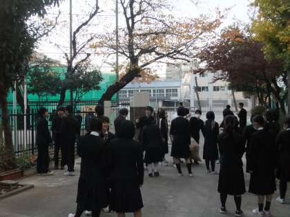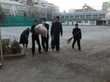 落ち葉掃き 公開日 2013/12/02 更新日 2013/12/02 今週の駒込中学校 12/2(月)枯葉のシーズンとなり、先週からクラス毎の当番制で、いつもより少し早く登校して校庭や校門、学校近辺道路の清掃をしています。今朝は、3年B組が頑張ってくれました。 いいね(0)