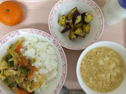 12月3日(火)の給食 公開日 2013/12/03 更新日 2013/12/03 給食 回鍋肉丼 じゃこ入り大学芋 春雨とたまごのスープ 果物(みかん) 牛乳 今日の大学芋には、じゃこがたっぷり入っています。給食では、不足しがちな小魚を摂れるよう、ふりかけや和え物などに入れて工夫しています。さつまいもが甘くておいしいものが納品されたためもあって、よく食べていました。 いいね(0)
