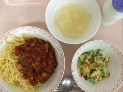 12月5日(木)の給食 公開日 2013/12/05 更新日 2013/12/05 給食 スパゲティペスカトーレ フレンチサラダ グレープフルーツゼリー 牛乳 今日のスパゲティペスカトーレは、トマトと魚介を使ったソースがかかったスパゲティです。給食では、にんにく、セロリ、玉ねぎをよく炒め、トマト缶、トマトピューレ、ケチャップ、塩こしょうなどで調味し、あさり・えび・いかの魚介を入れています。 いいね(0)