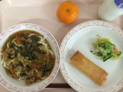 12月13日(金)の給食 公開日 2013/12/17 更新日 2013/12/17 給食 カレーうどん ポテト春巻き 浅漬け 果物(みかん) 牛乳 ポテト春巻きの中には、マッシュしたじゃがいもとハム、コーン、バターが入っています。おやつにもぴったりの一品です。 いいね(0)