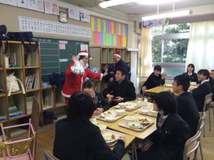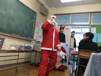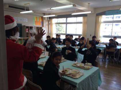 今年も登場!駒中サンタさん♪ 公開日 2013/12/20 更新日 2013/12/20 給食 今年も駒込中の教室にサンタさんが登場しました!主事さん手作りのバージョンアップしたソリに乗って、雪見大福と幸せをみなさんに届けてくれました。 いいね(0)
