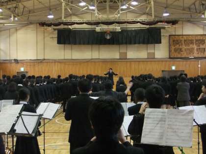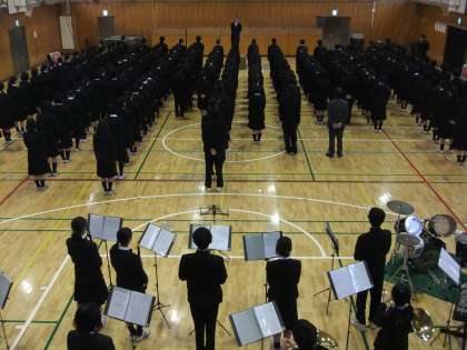 吹奏楽部の伴奏で、校歌を合唱しました。