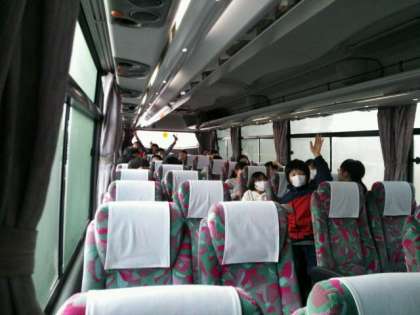 本日から1年生のスキー教室です。バスは時間通りに出発し、女神湖に向かっています。