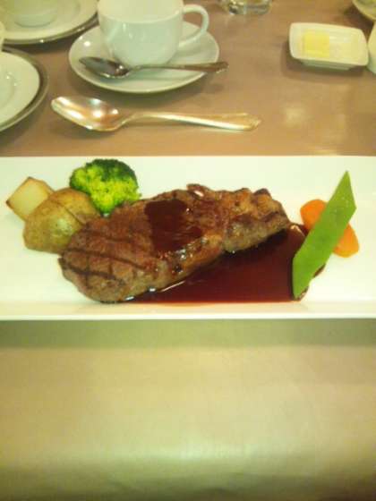 ステーキとデザートに大満足(飲みものは生徒は紅茶です)