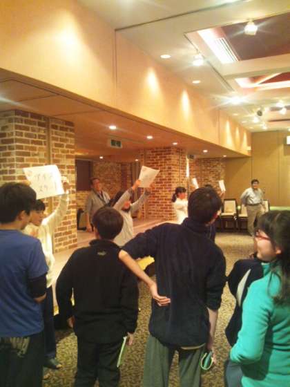 レクが始まりました。まずビンゴ大会、クイズ大会です。