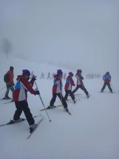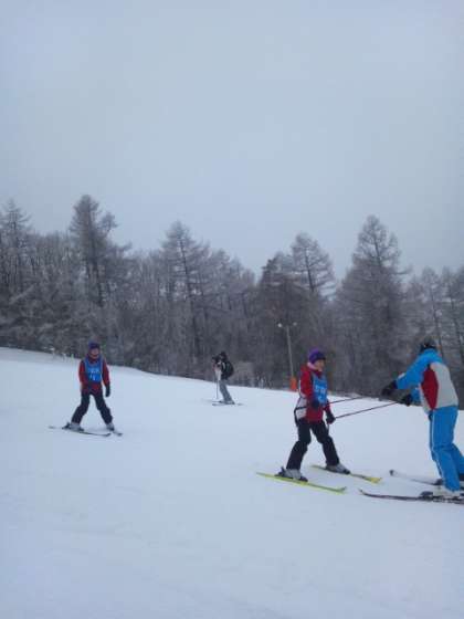 朝よりも晴れてきました。景色がとてもいいです。初級班もリフトで上に上がり、ゆっくり降りてきています。