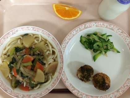 「たこ揚げくん」は、リクエストメニューでした。今日のたこ揚げくんは、23kgものジャガイモをふかしてつぶし、たことキャベツ、片栗粉を混ぜ、510ヶ丸めて揚げました。上には、中濃ソースと砂糖を混ぜたものとおかか、あおのりをかけています。うれしいことに、残菜0でした!